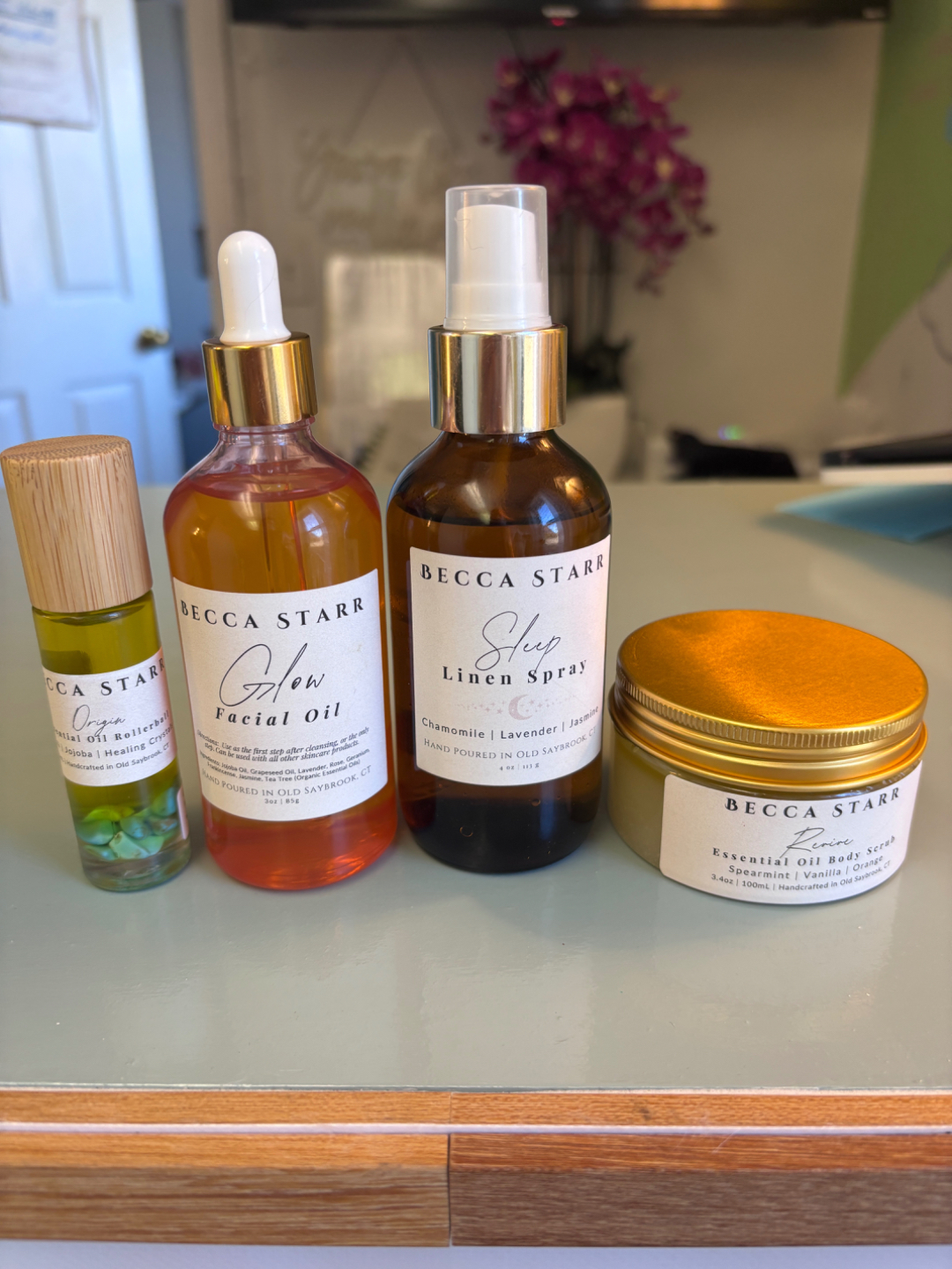 Every product here is handcrafted in small batches with pure essential oils, clean ingredients, and a deep intention for softness, clarity, and beauty. These are the rituals I use in my own home and on my own body, curated for the woman who wants comfort, luxury, and emotional ease integrated into her daily life.
